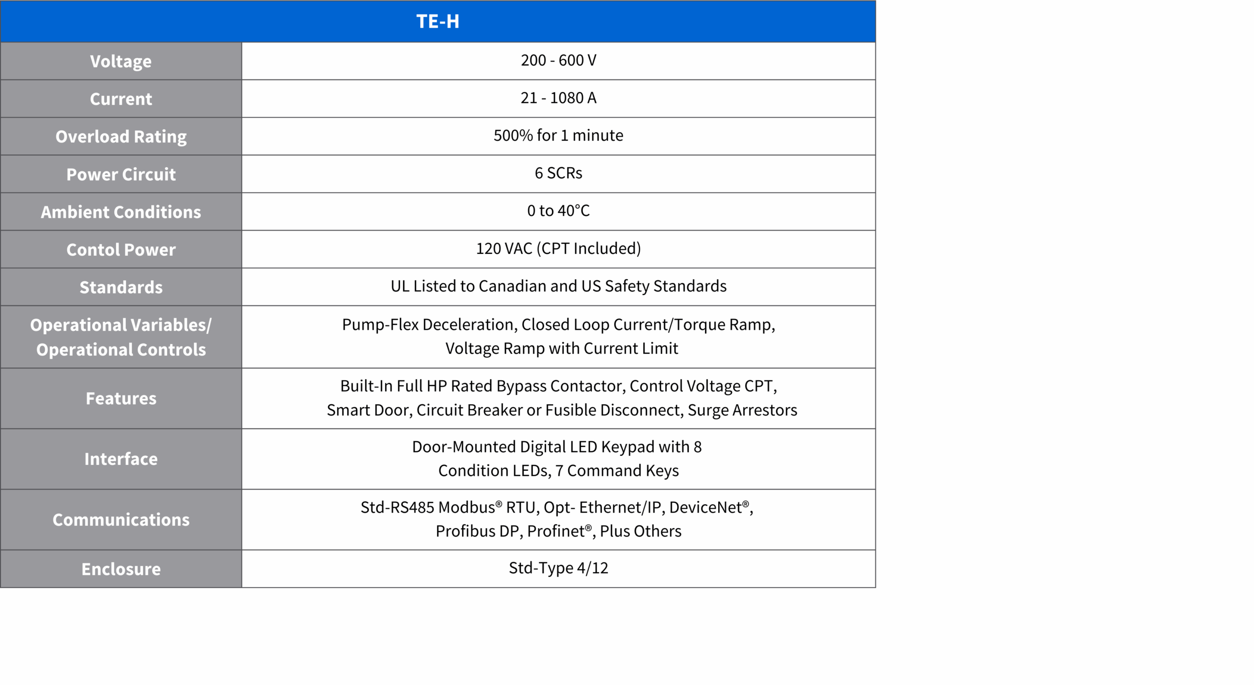 The TE-H Series from Toshiba is a versatile and robust solution for industrial applications. It combines the performance of Toshiba’s TE2 Series Solid State Starter within a heavy-duty enclosure, which provides reliable soft starting, motor and load protection, and flexible control options. Ready to use right out of the box, the TE-H Series simplifies installation. It is ideal for pumps, fans, blowers, and conveyors with closed-loop torque/current ramping for smooth acceleration and for compressors and chillers with voltage ramping and current limiting for efficient starts in limited power conditions.