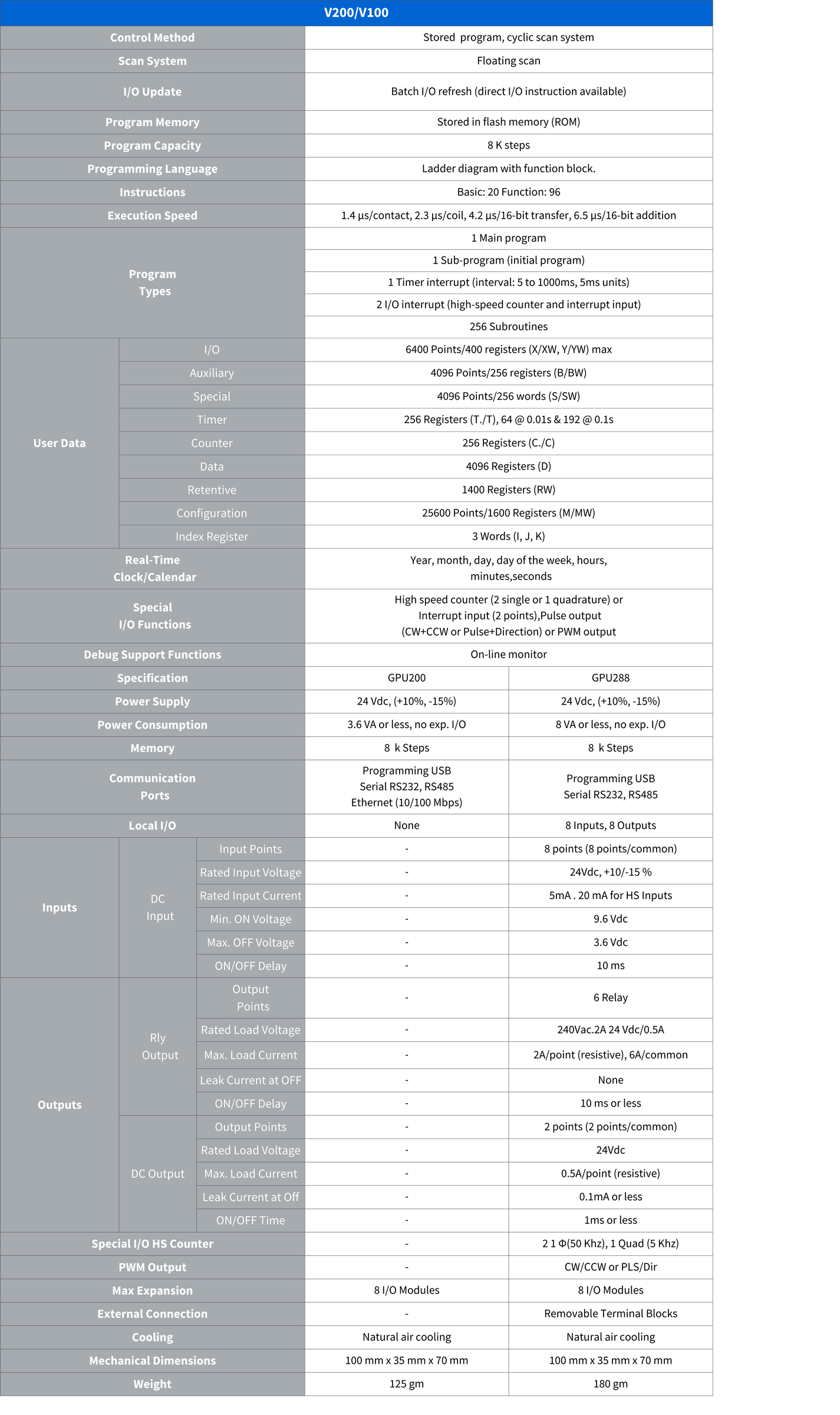 Toshiba’s V200 series products are micro programmable logic controllers with optional expansion I/O. Impressive communications capabilities, an advanced instruction set, and a large memory (program and data register) make the V200 an ideal fit for applications that previously required larger, more expensive programmable controllers. In addition, the V200’s high-speed performance makes it especially suited for sophisticated machine-control and complicated process-control applications.